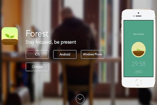 تطبيق 'Forest' الذي يفرض على المستخدم عدم استعمال الهاتف و تركه جانبا الى أن يكمل عمله وكلما طالت المدة كلما تمكن المستخدم من تطوير غابته هذه الغابة التي يمنحها لك التطبيق كوسيط و كحيلة من أجل عدم استخدام الهاتف أثناء العمل .. فالتطبيق هو في الأصل يعتبر كلعبة و التي تسمح للمستخدم بزراعة شجرة واحدة كل نصف ساعة ان لم تستعمل الهاتف حقا ، و بعد مرور نصف ساعة أنذاك ستكون قد اكتمل نمو الشرة و لك الحق في استعمال هاتفك!