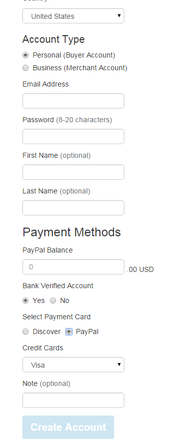ألان نتعرف على كيفية إنشاء حساب على paypal بدون فيزا : paypal.com/us/signup/account وأختار Personal Account ثم تكتب الأميل و الباسورد الذى ترغب التسجيل بهم