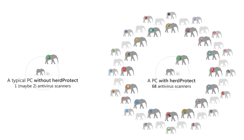كما ذكرت سابقا أن أفضل وسيلة لفحص ملف معين هي عن طريق فحصه بكافة برامج الحماية فتصير متيقنا بسلامة الملف ، هذا تماما ما يفعله herdProtect لكنه يفحص النظام بأسره و ليس ملف أو اثنان و ذلك اعتمادا على أزيد من 68 برنامج حماية (أنظر أسفل الموضوع) ، إذن هذه أقوى و أفضل طريقة بدون نقاش يمكنك بها فحص جهازك .
