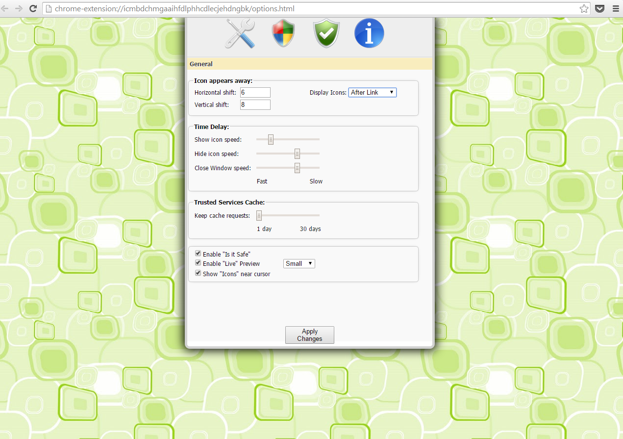 يمكنك تحميل الإضافة عن طريق الرابط أسفل التدوينة، حيث بعد تثبيته ستلاحظ أيقونات متواجدة في أي رابط من صفحات الويب التي تزورها، إذ يمكنك الضغط على أيقونة الدرع ثم انتظار بضع ثوان لتطلعك على النتائج المختلفة لخدمات الحماية المذكورة أعلاه.