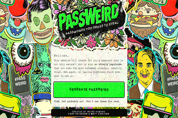 قد ترغب في توليد كلمة سر مختلفة و غير معروفة لدى الجميع فتكون حائر في تلك اللحظة ، في موضوع اليوم سوف نتطرق الى طريقة توليد كلمات مرور غير عادية و غير مشهورة و متداولة يعني بشكل فوري ستحصل على كلمات مرور جاهزة للإستعمال. موقع Passweird يوفر لك إمكانية توليد كلمات مرور جاهزة معقدة و أمنة و ذلك بتوفرها على حروف متنوعة ثم يتم تجميعها بشكل عشوائي لتكون مثيرة للإشمئزاز بعلة صعوبتها ، رابط الموقع تجده أسفل التدوينة تنقر عليه ثم ستجد صفحة يتوسطها زر باللون الأخضر به Generate Passweird. تنقر على الزر الأخضر و سيتم توليد كلمة سر جديدة معقدة أكثر مما تتصور و في ثواني معدودة ، كنصيحة بعد الحصول على كلمة المرور قم بوضعها في مذكرة لكي لا تفقدها بشكل سريع أو من الأفضل إستعمل إضافة lastpass manager لحفظ الحسابات على شبكة الأنترنت. رابط الموقع : Passweird