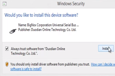 بعد تحميل البرنامج تقوم بالنقر على أيقونة التثبيت ثم تنقر مباشرة على Install حيث و أثناء عملية التثبيت ستظهر لك نافدة منبثقة وهي خاصة بتعريف يكون مرفق مع البرنامج ، تقوم بالموافقة عليه بالنقر على Install كذلك و تنتظر إلى أن يتم إكتمال التثبيت.