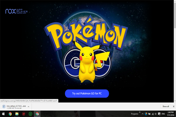 كل ما عليك هو تحميل البرنامج الذي سيمكننا من تشغيل لعبة الـPokémon Go من الرابط الذي ستجده أسفل التدوينة بالنقر على " Try out Pokémon GO for PC " كما هو مبين في الصورة التالية :