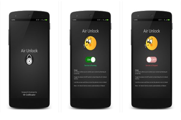 في العام الماضي سبق و أن شاركت معكم طريقة في تدوينة سابقة تعمل على أجهزة الأندرويد مفادها أنها تمكن المستخدمين من ضبط الجهاز بشكل ذكي لكي يلتقط الصور عن طريق التصفير ! حيث اليوم و في هذا الموضوع سوف أشارك معكم طريقة جديدة فريدة من نوعها و التي ستمكن مستخدمي أجهزة الأندرويد من فتح قفل شاشة الهاتف عن طريق النفخ . إنه تطبيق يدعة " Air Unlock " حيث يعمل هذا التطبيق على تجميع الهواء الموجه له لكي يفتح قفل شاشة الهاتف ، يمكنك تحميل التطبيق فهو تطبيق مجاني بالإضافة إلى أن رابط التحميل ستجده أسفل التدوينة . غير ذلك فبعد تحميل و تثبيت التطبيق تقوم مباشرة بفتح و النقر على زر On من أجل تفعيل التطبيق حيث و بذلك سيتم تفعيل التطبيق حيث سيكون بإمكانك النفخ جهة الميكروفون في الجهاز ليتم فتح قفل شاشة الهاتف ! قد يكون أمر عجيب لكنه حقيقة كما أترك لك التجربة لتتأكد بنفسك. رابط تحميل التطبيق : Air Unlock